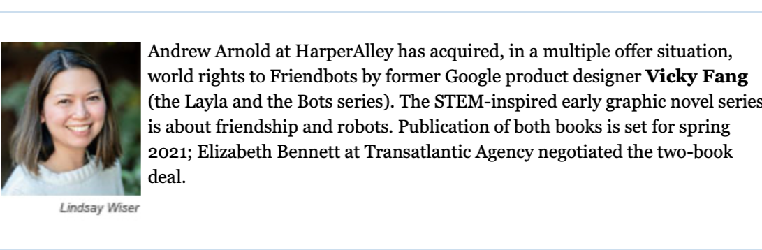 Vicky Fang, Hope Lim (I AM A BIRD), Isabella Kung (NO FUZZBALL!), and Darshana Khiani (HOW TO WEAR A SARI) were mentioned in #Reading is for Everyone: 15 Diverse Authors to Watch in 2020.
