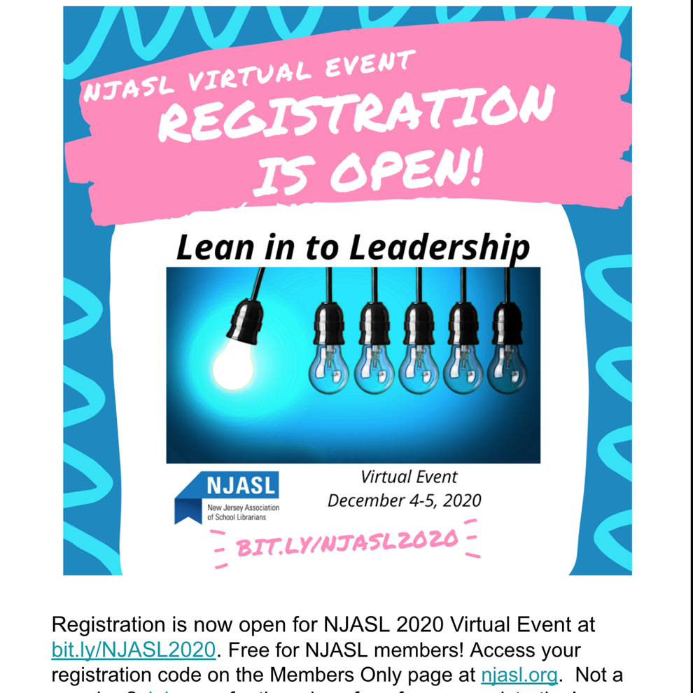 Also, the Soaring '20s will present the following panels at the New Jersey Association of School Librarians Annual Conference (virtual), Dec. 4-5. Find registration information here. Stay tuned for scheduling details.: