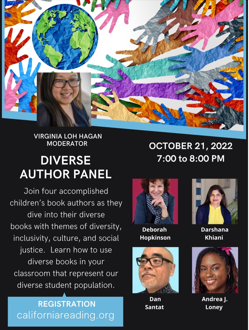 Oct 21 at 7 p.m. Pacific (virtual) - Darshana Khiani will be part of the Featured Author Panel for the California Reading Association's 54th Annual Conference. Register for the conference here.